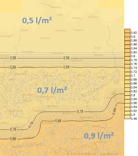 Heute schiebt sich eine Regenzone von Frankreich nach Rheinland-Pfalz und im weiteren Tagesverlauf auch ins südliche NRW, sowie in die Landesmitte. Dabei können nochmals Mengen zwischen 5 und 10 Liter pro Quadratmeter, örtlich auch mehr erreicht werden. Im nördlichen Bereich dieser Zone kann es in der Nacht auf Sonntag auch regional Schneeflocken geben. Sonst bleibt es überwiegend trocken.