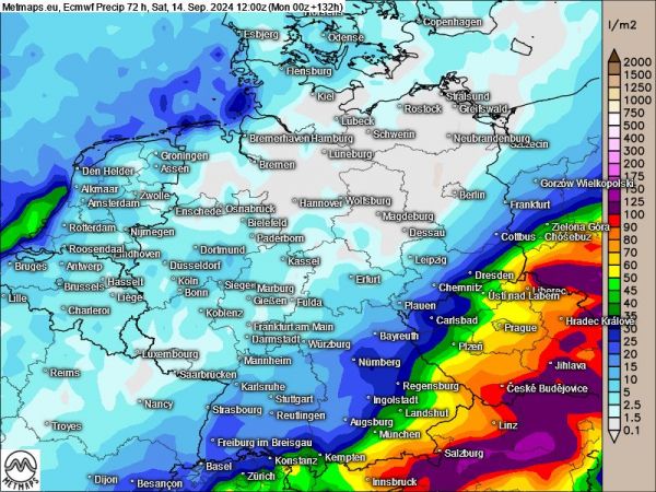 ECMWF-Prognose, 72-Stunden-Regenmengen bis Samstag (12:00 Uhr)