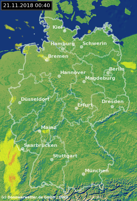 Radarbild von Mittwoch, 21.11.2018 um 00.40 Uhr