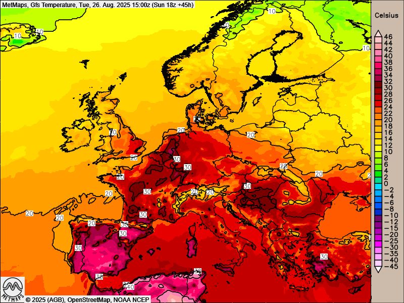 Nach einer kühlen Nacht geht es ab heute in eine kurze aber heiße Phase mit Hoch "Mareike" - am Dienstag messen wir nochmals Temperaturen verbreitet über 30 Grad. Am Mittwoch treten dann bei leichter Schwüle erste Schauer und Gewitter auf.