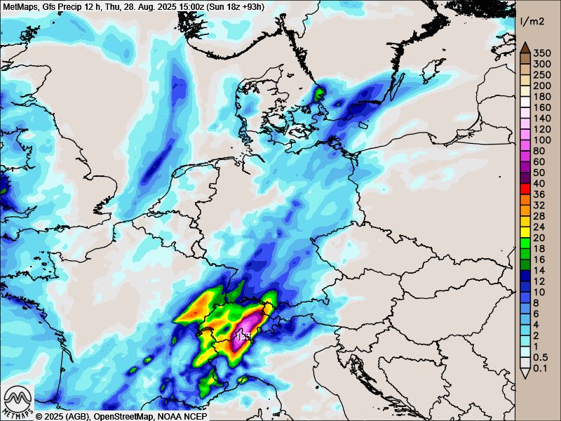 Der Übergang zu wechselhafterem Wetter wird von Gewittern begleitet. Besonders Norditalien und der Alpenraum müssen lokal wieder mit Starkregen rechnen, die Starkregensaison im Herbst beginnt jetzt auch im Mittelmeerraum.