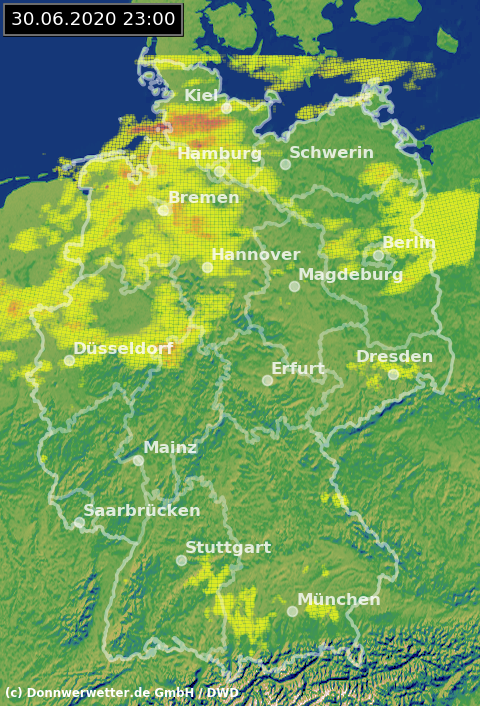 Radarbild von Dienstag, 30.06.2020 um 23.00 Uhr
