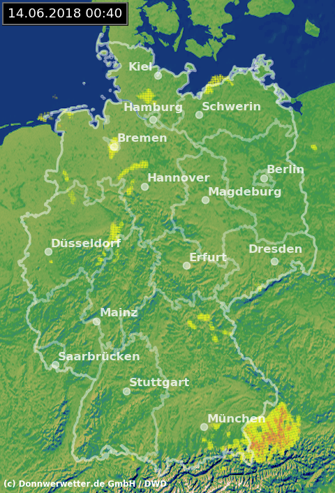 Das Radarbild zeigt aktuell in Südostbayern noch einige Signale mit Regen, die sich jedoch nach Österreich entfernen. Sonst präsentiert sich der Himmel über Deutschland überwiegend wolkenverhangen und nur regional aufgeklart.