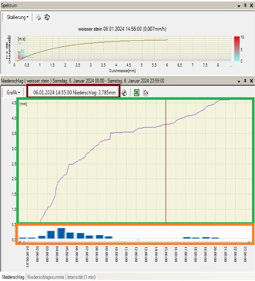 Bei den von uns im donnerwetter.de-Wetterpark betriebenen Niederschlagsmesssensoren werden jene Unterschiede deutlich, wie ein Beispiel vom 06.01.2024 zeigt.
