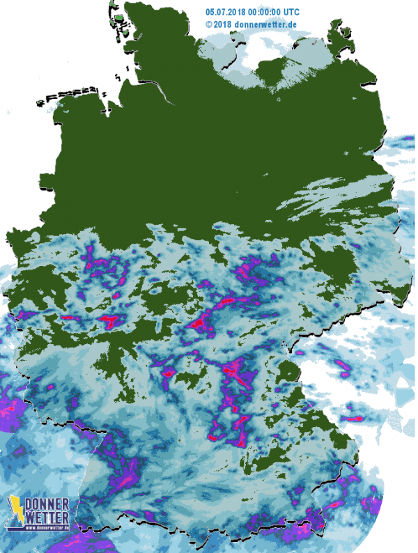 Die Tagesniederschlagssummen vom 05.07.2018.