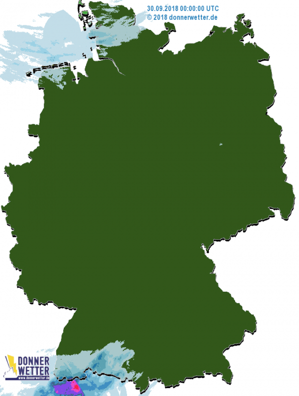 Niederschläge gab es am Sonntag nur regional, etwa vereinzelt im Nordseeküstenumfeld. Etwas stärkere Regenaktivität zeigt unsere Karte für den Süden Baden-Württembergs - nass zeigte sich der Sonntag vor allem im Schweizer Grenzgebiet.