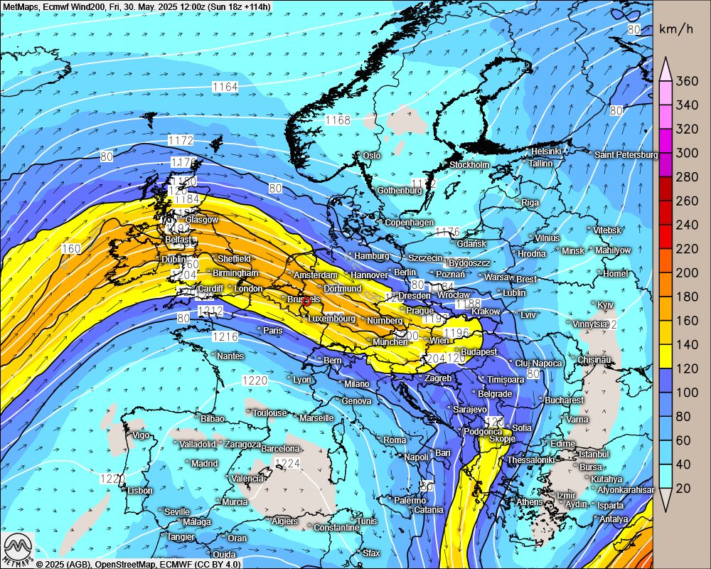 Höhenwindkarte Freitag, 30.05. (ECMWF)
