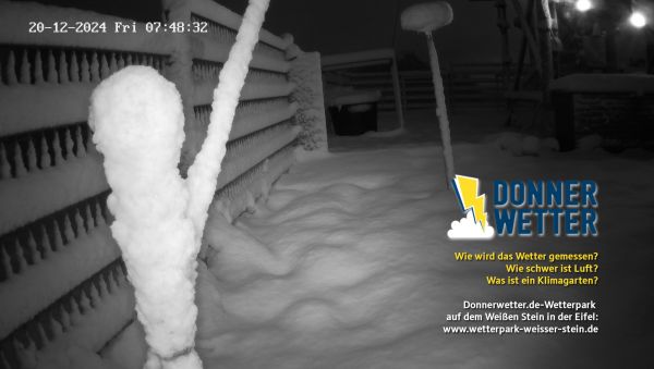 Im donnerwetter.de-Wetterpark auf dem Weißen Stein in der Eifel etwa: Binnen einer Stunde fielen hier gestern 13 cm Neuschnee, aktuell summiert sich die Schneedecke auf beachtliche 14 cm.