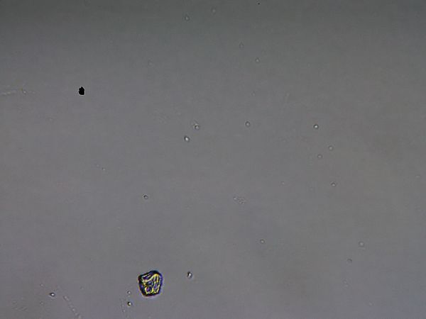 Die Größe der Partikel beträgt zwischen 0,05 bis 0,5 mm und kann mit einfachen Mikroskopen gut erkannt werden, wie ein paar Beispielbilder zeigen.