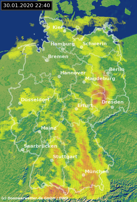 Radarbild von Donnerstag, 30.01.2020 um 22.40 Uhr