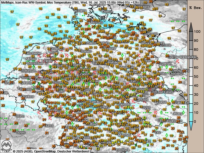 Wetter-/Temperaturkarte für Mittwochnachmittag (15:00 Uhr) nach ICON-RUC