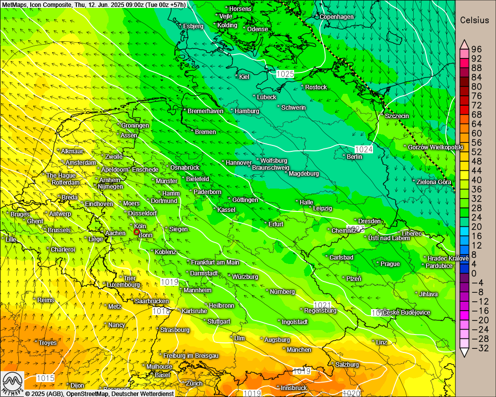 Am Freitag bahnt sich die warme Luft dann ihren Weg weiter in Richtung Norden. Hier bewegen sich die Tageshöchstwerte dann bereits bei 21 Grad an den Küsten und 26 Grad in Hamburg. Im Westen und Südwesten ist bei bis zu 33 Grad Schwitzen angesagt.