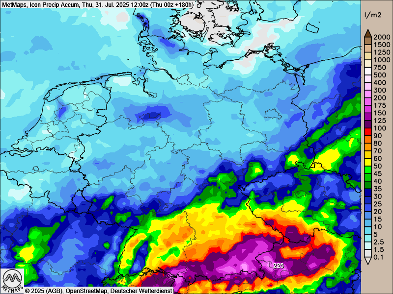 Die Karte zeigt die akkumulierten Niederschlagsnummen bis zum 31.07.2025: