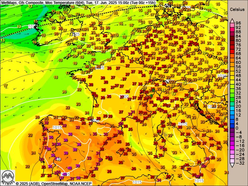 Während wir uns hierzulande bis Freitag in einem angenehmen Sommertemperaturenbereich bewegen, herrschen in Spanien aktuell "Fiebertemperaturen": Auf zum Teil deutlich über 40 Grad steigt das Thermometer hier in den nächsten Tagen.