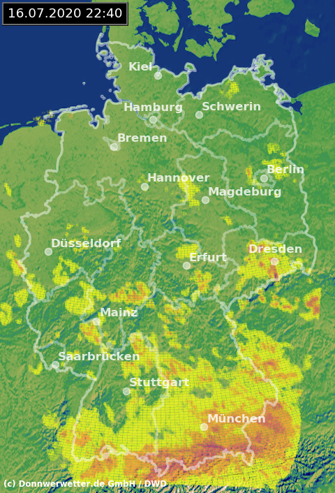 Radarbild von Donnerstag, 16.07.2020 um 22.40 Uhr