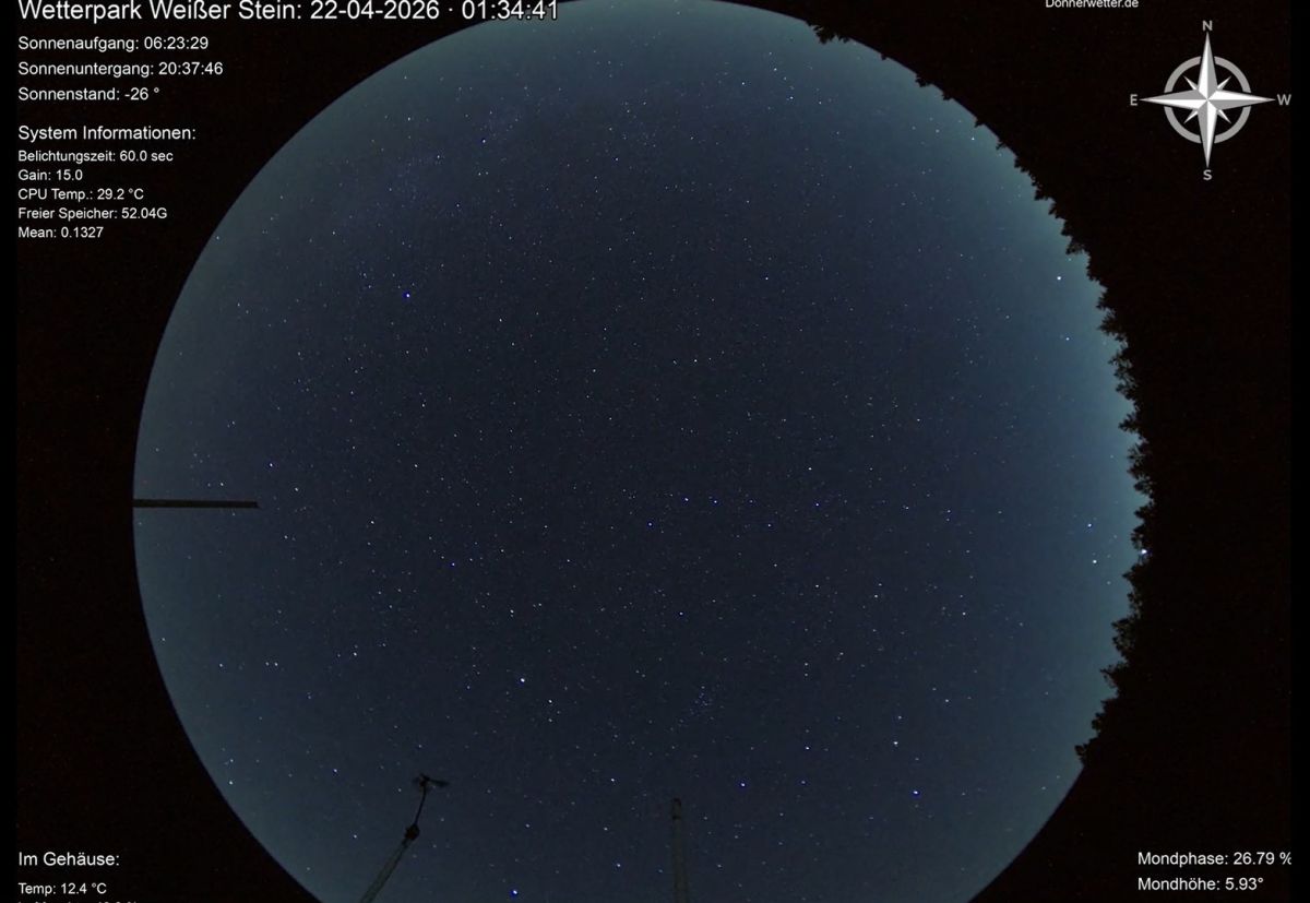 Standortwahl: Sucht Euch einen Platz abseits der Stadtlichter. Ein dunkles Feld oder eine Anhöhe sind perfekt. Da die Nächte durch die Hochdrucklage aktuell sehr kühl sind (Bodenfrostgefahr!), ist eine warme Decke oder ein Schlafsack sowie eine Isomatte (zum entspannten Liegen auf dem Rücken) Pflicht.