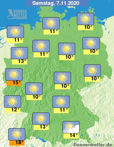 Am Samstag sind dann auch im Norden Wolken kein Thema mehr: Nahezu über dem gesamten Bundesgebiet scheint die Sonne bis zu ihrem Untergang von einem wolkenlosen Himmel. Die Temperaturen ziehen mit Höchstwerten um 10 bis 18 Grad zudem noch ein wenig an.