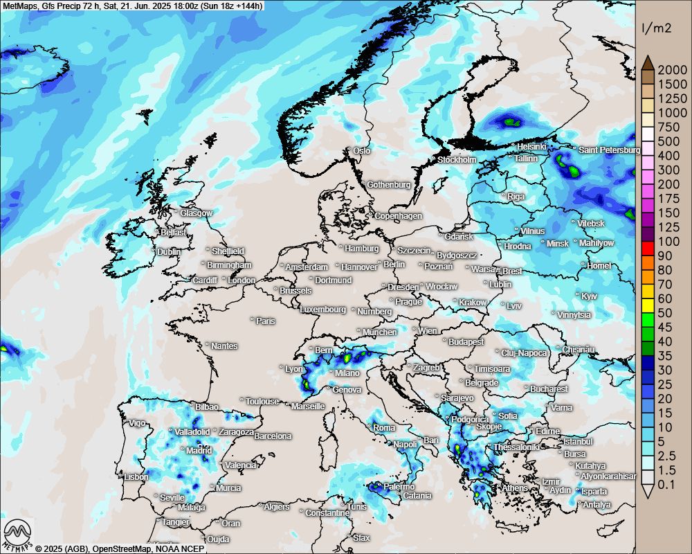 Die folgenden Karten bilden die Wetterlage nach GFS-Wetterlage für Montag und Dienstag sowie die Regenmenge bis Freitag ab.