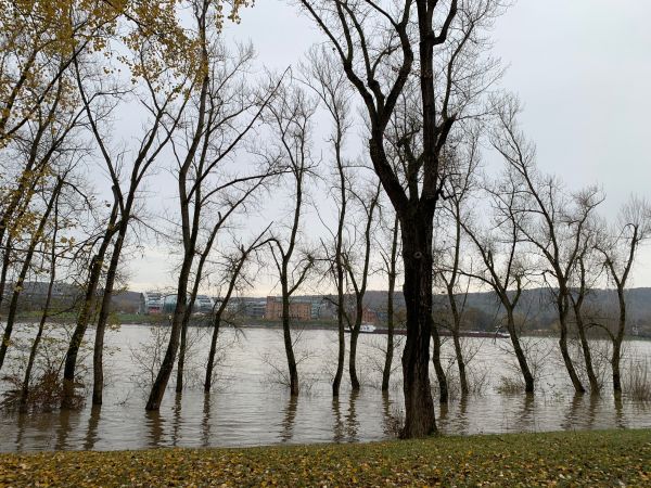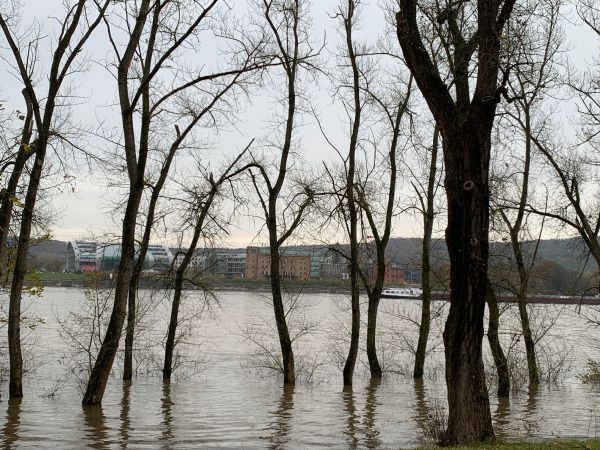 Die Fotos zeigen den Rhein bei Bonn am Samstag und Sonntag (18./19.11.2023) bei einem Pegel von knapp 660 cm am Sonntag.