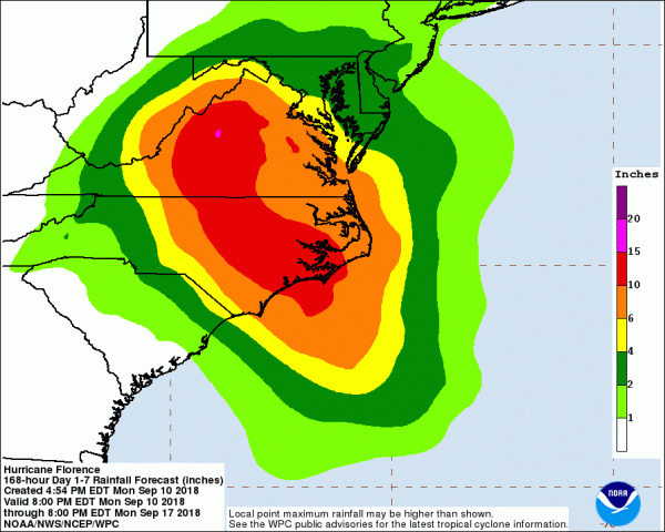 Das nationale Hurrikanzentrum (NHC) stuft "Florence" als extrem groß und gefährlich ein, akutell wird der Wirbelsturm in der zweithöchsten Kategorie 5 der Saffir-Simpson-Hurrikan-Skala eingeordnet. Experten befürchten den schwersten Wirbelsturm seit 30 Jahren an der US-Ostküste.
