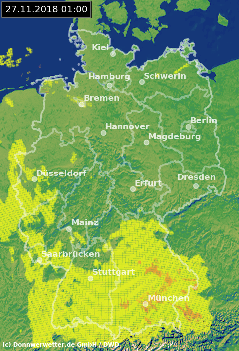 Radarbild von Dienstag, 27.11.2018 um 01.00 Uhr