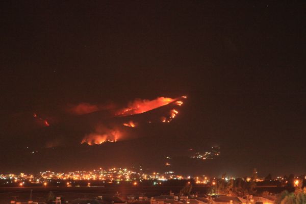 Besonders nachts wirken Feuerfronten bedrohlich.Sie rasen bei starkem Wind mit mehr als 100 m pro Minute voran.