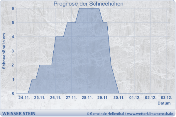 Die Grafik zeigt die aktuelle Schneehöhenprognose für den Weißen Stein - hier geht es zu unserer Schneecam!