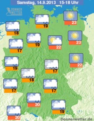 Am Samstag geht vor allem der Nordosten Deutschlands als Wettergewinner hervor. Hier zeigt sich im Tagesverlauf bei angenehmen Werten bis 23 Grad häufiger die Sonne. Vor allem in Mecklenburg und im Norden Sachsen-Anhalts könnte es ein sonnig-warmer Tag werden. Der Rest von Deutschland wird auch am Samstag immer wieder von Schauern heimgesucht, der Himmel bleibt meist grau. Mit Werten um 17 bis 19 Grad bliebt es eher kühl.