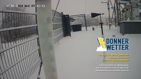 Die Schneecam im donnerwetter.de-Wetterpark in der hohen Eifel, hier liegen bereits 11 cm Schnee, finden Sie hier.