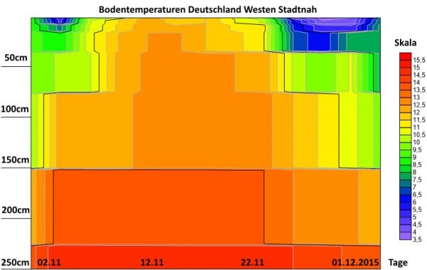 Bodentemperaturen vom 02.11.2015 bis zum 01.12.2015, für den Westen Deutschlands.