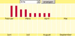 Darüber hinaus ermitteln wir auch die langfristige Entwicklung der nächsten Monate für die einzelnen Pollenarten auf der Basis des bisherigen Verlaufs und der Blühphasen.