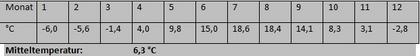 Tab.: Monatsmitteltemperaturen für Halifax in Neuschottland (44,88° N, 63,52° W)