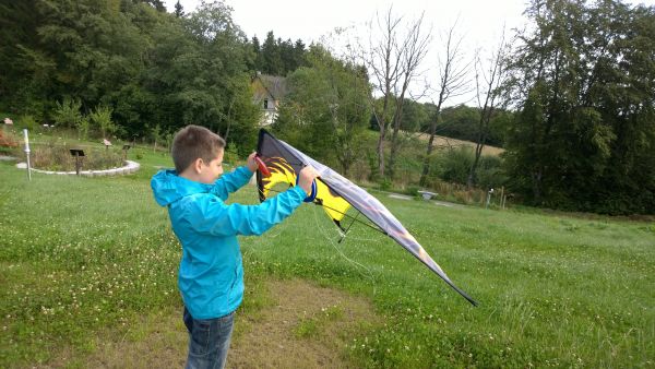 Das windige, letzte Wochenende war wie geschaffen dafür, nochmals den alten Lenkdrachen aus dem Keller zu kramen.